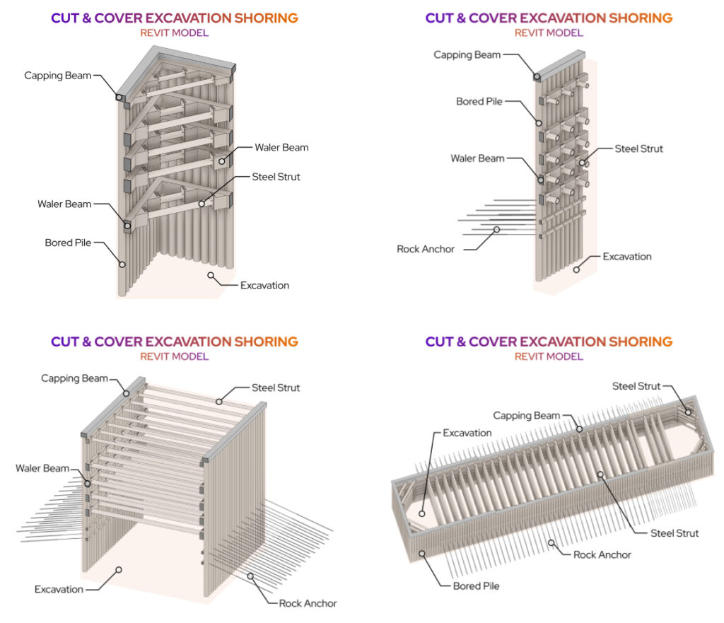 Metro projelerinde; geoteknik disipline ait kazı-iksa modellerini, BIM ortamında LOD 350 seviyelerinde üretiyoruz.